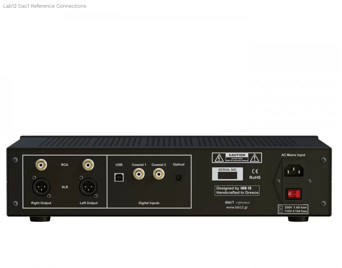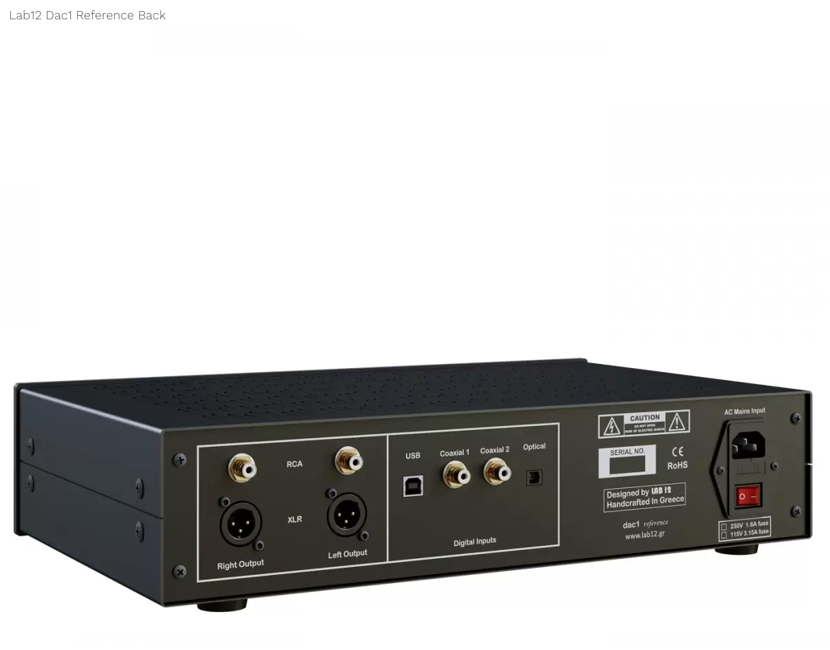 Het Griekse Lab12 heeft een zeer buizen dac gebouwd. Een heel mooi modern ontwerp in een retro behuizing, in het zwart of aluminium kleur. Het apparaat heeft 2xSPDIF(Coaxiaal), 1xUSB2, 1xspdif(Optical toslink). 2xRCA en 2xXLR uitgangen. Gemaakt om het maximale uit een hifi installatie te halen.