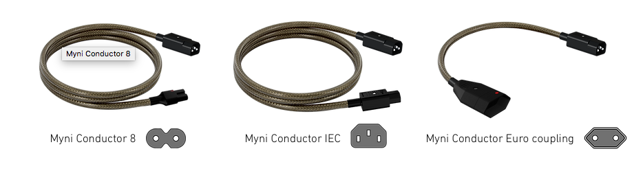 Myni Conductor Euro koppelsnoer een schuko stekker aan de stopcontact kant en aan de apparaat kant een CEE 7/16 connector. Stroomkabel is 2x 1mm2 en kan maximaal 2.5A verwerken.