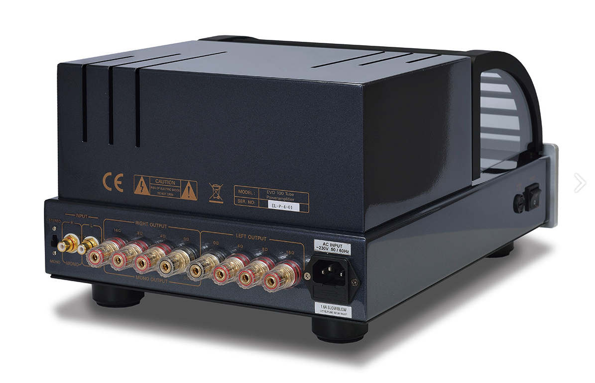 Met EL34 eindbuizen 82 watt mono kanaal.