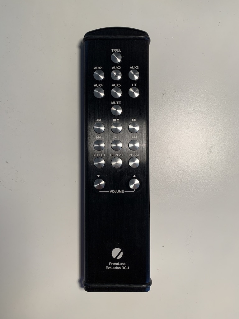 Er zijn hier geen goedkope plastic afstandsbedieningen. PrimaLuna gebruikt zware metalen afstandsbedieningen die substantieel zijn, maar toch elegant en ergonomisch.De EVO300 wordt geleverd met de uitgebreide afstandsbediening waarmee ook de eindversterkers in Triode en Ultra lineair geschakeld kunnen worden.